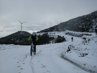 Lá no cimo, já com 25 Kms e a pedalar acima da cota dos mil metros a neve em abundância existente no caminho tornava tudo mais duro e mais lento.