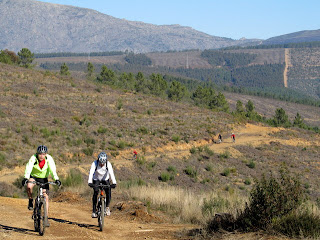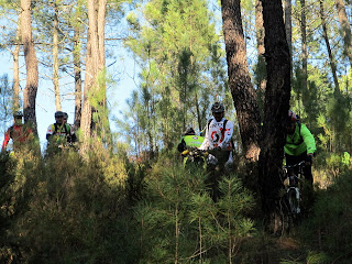Junto ao marco entrámos num comprido single track pelo pinhal abaixo. Fantástica alternativa à descida do corta-fogo. A obra é do amigo Filipe que por vezes nas horas vagas, troca a bicicleta pela enxada.