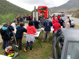 Trazíamos um plano idêntico ao de 2010, mas com a possibilidade de algumas alternativas de visita. Descemos à Ribeira das Cabras, passámos a ponte e entrámos finalmente em terra batida. Como já levávamos aqui uns calmos 30 Kms, estava na hora da primeira paragem para "comes e bebes".