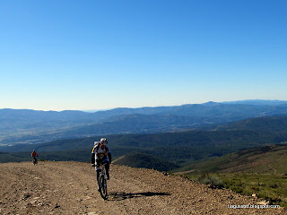 Ora como a subida não era meiga, não houve fotografias no "durante". A parte final da subida para apanha a crista que vem da Pedra Alta, tínhamos uma prenda. No chão estava escrito "PUXA" e pela frente tínhamos 500 metros de rampa que por vezes a inclinação chegava aos 20%. A muito custo e a bufar fiz tudo montado. Só quando vi o "UFA" é que pude tirar uma fotografia descansado.